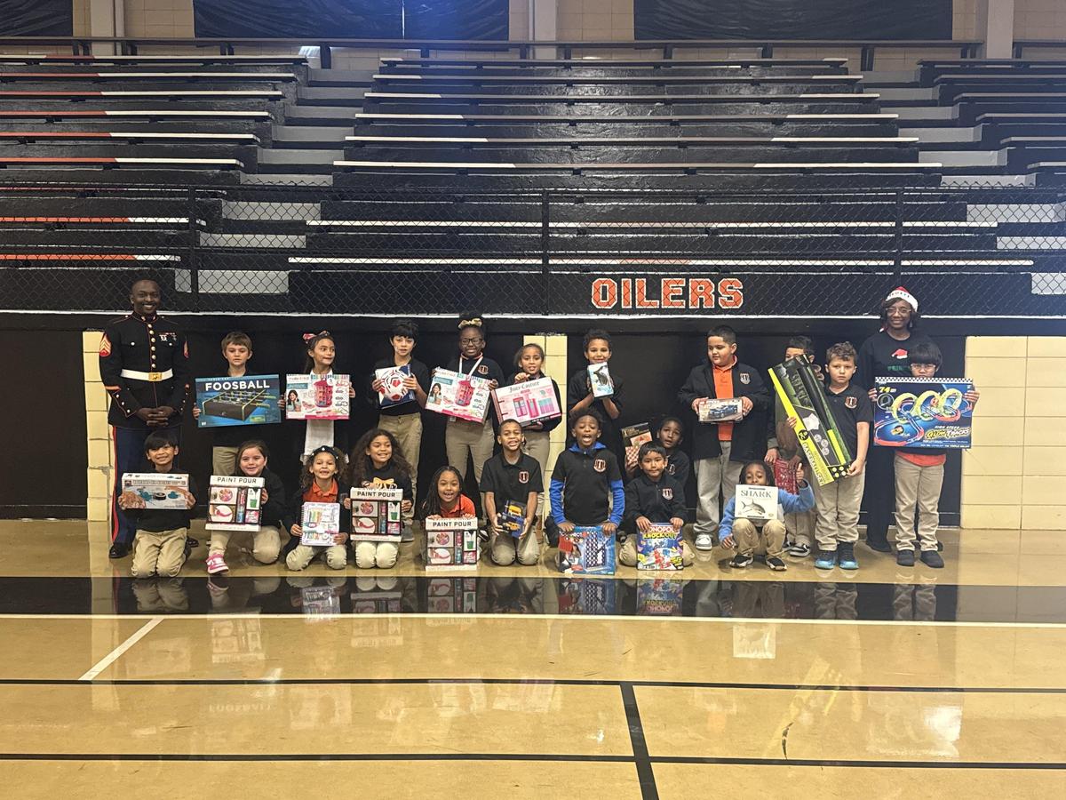 Boothville-Venice Elementary School was filled with excitement Tuesday, December 9, 2025 as representative Sergeant Bwerevu, the Lead Coordinator for Belle Chasse and Plaquemines Toys for Tots, made a special visit to spread holiday cheer. Smiles lit up the gymnasium as students received gifts generously donated through the program, reminding everyone of the power of giving during the Christmas season.