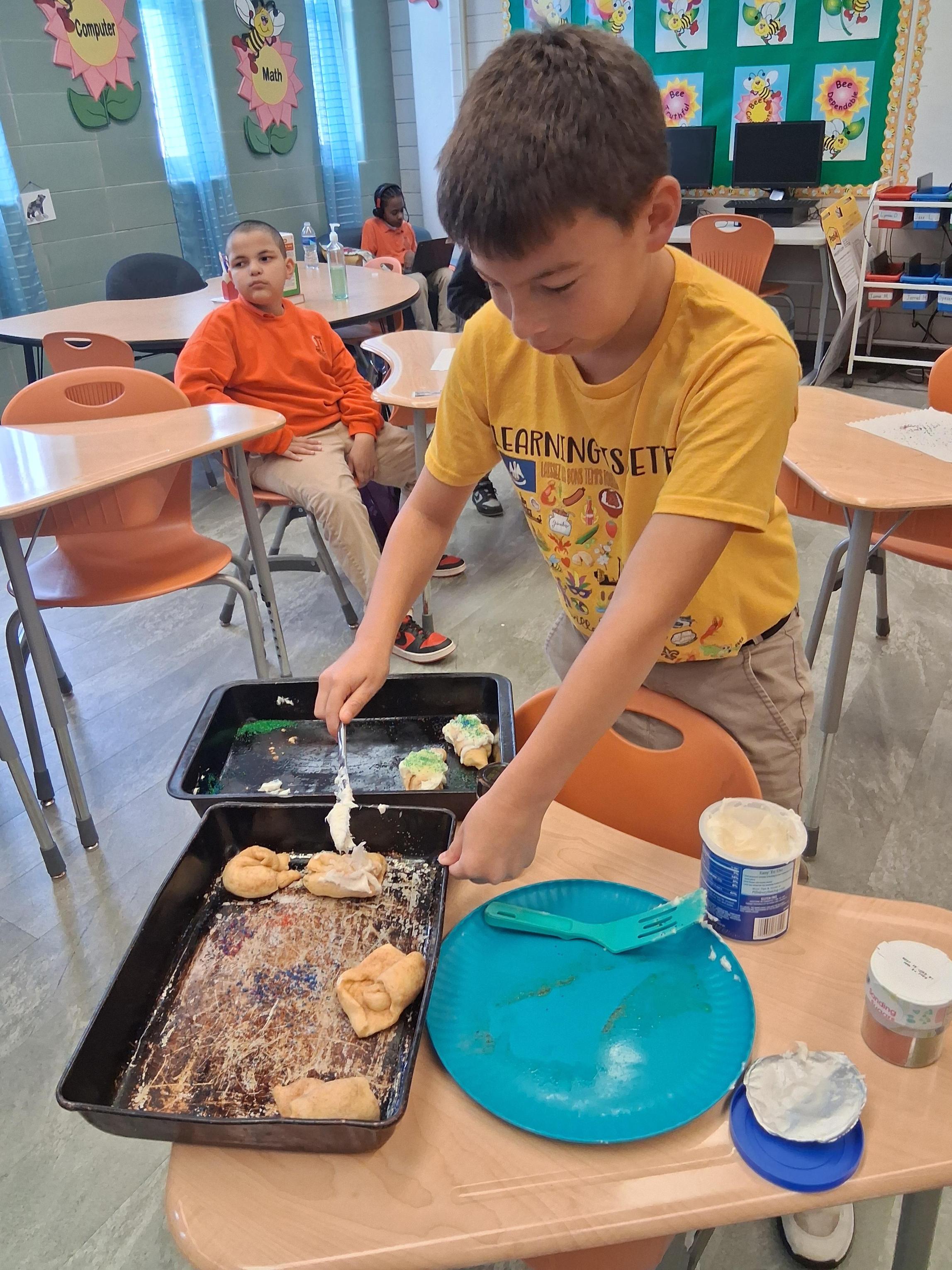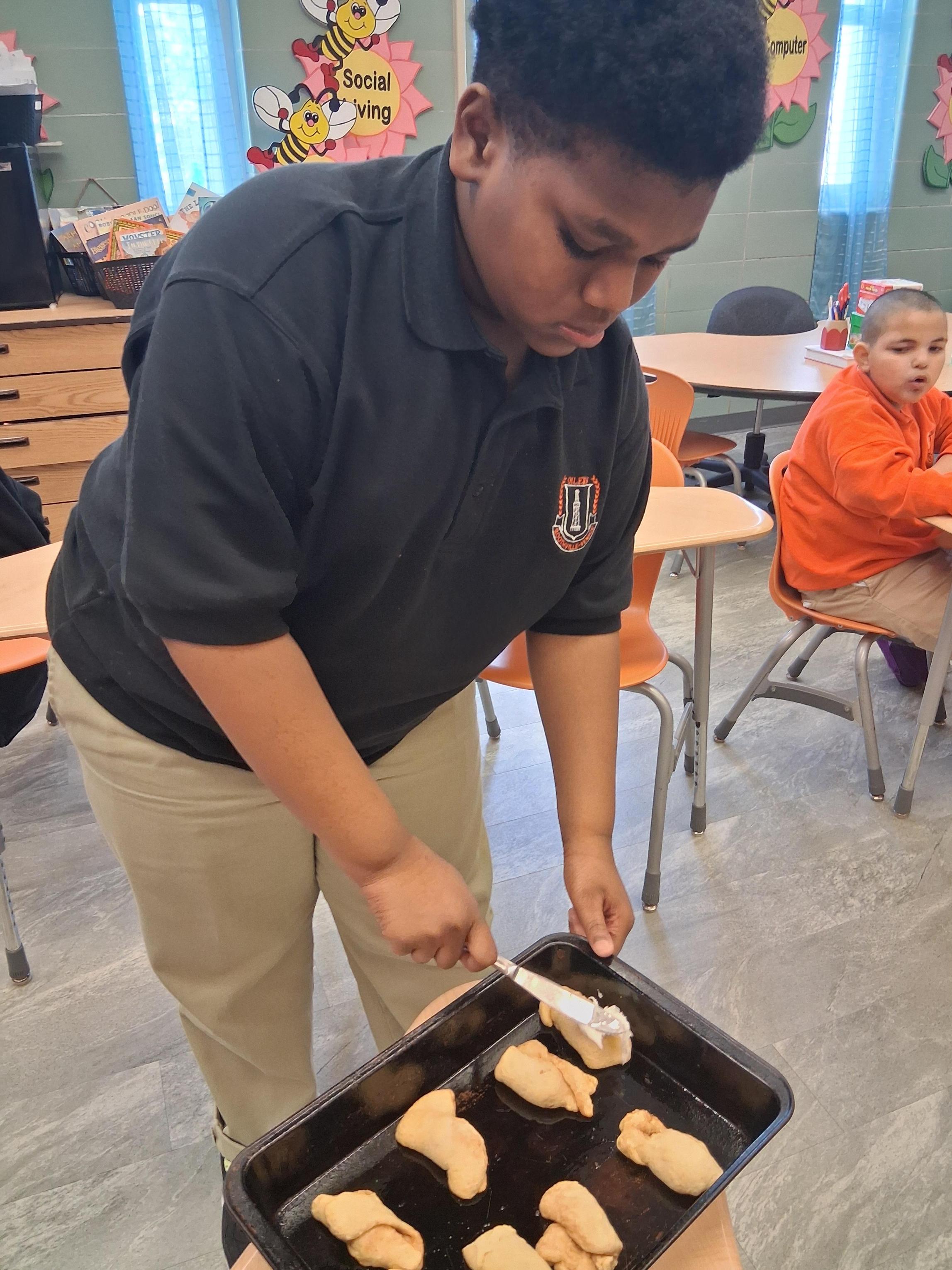 Mr. Blackmon and his students had a fun and exciting time making king cakes. The students had so much fun engaging in the activity. They shared their delicious creations with the office staff.
